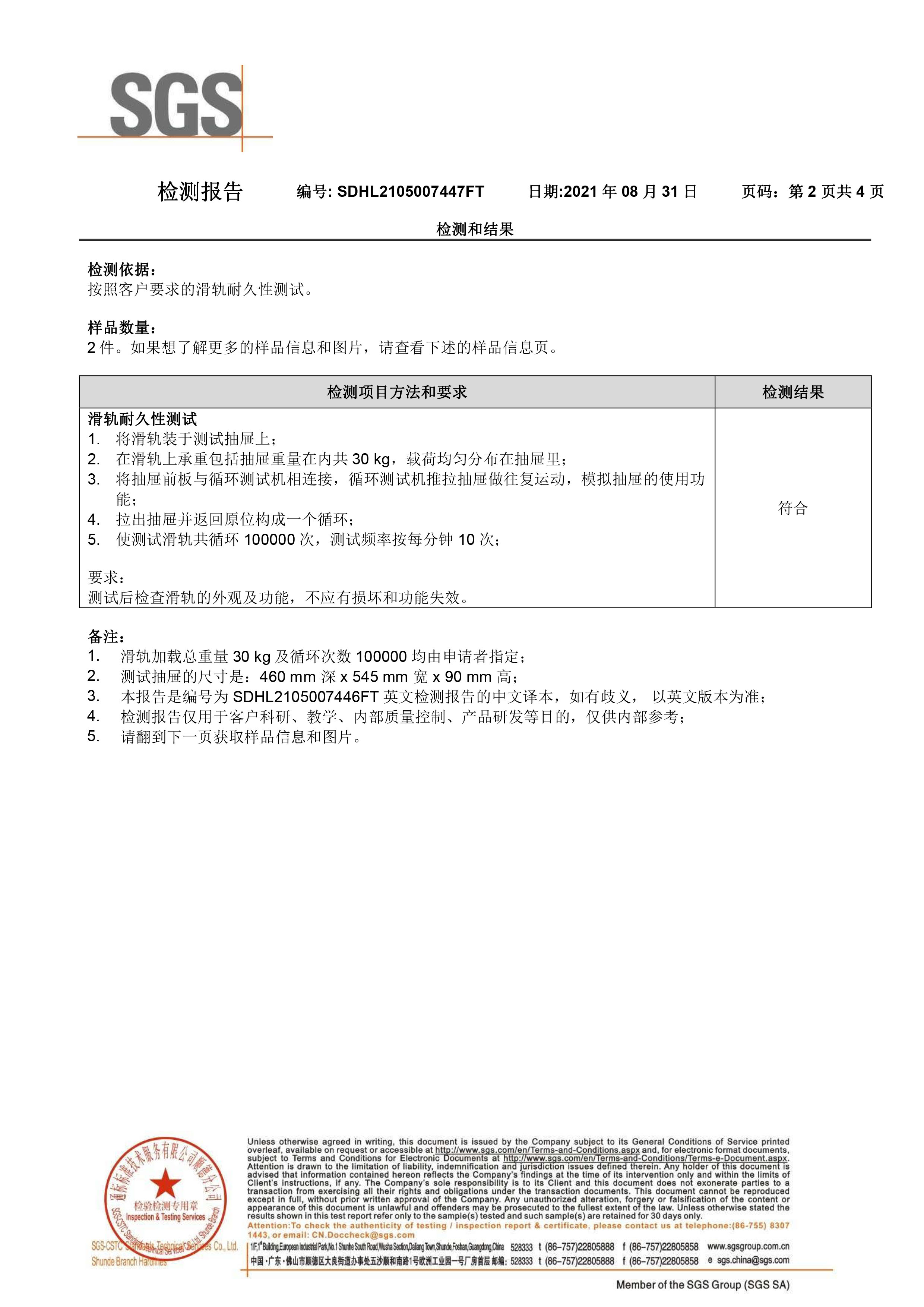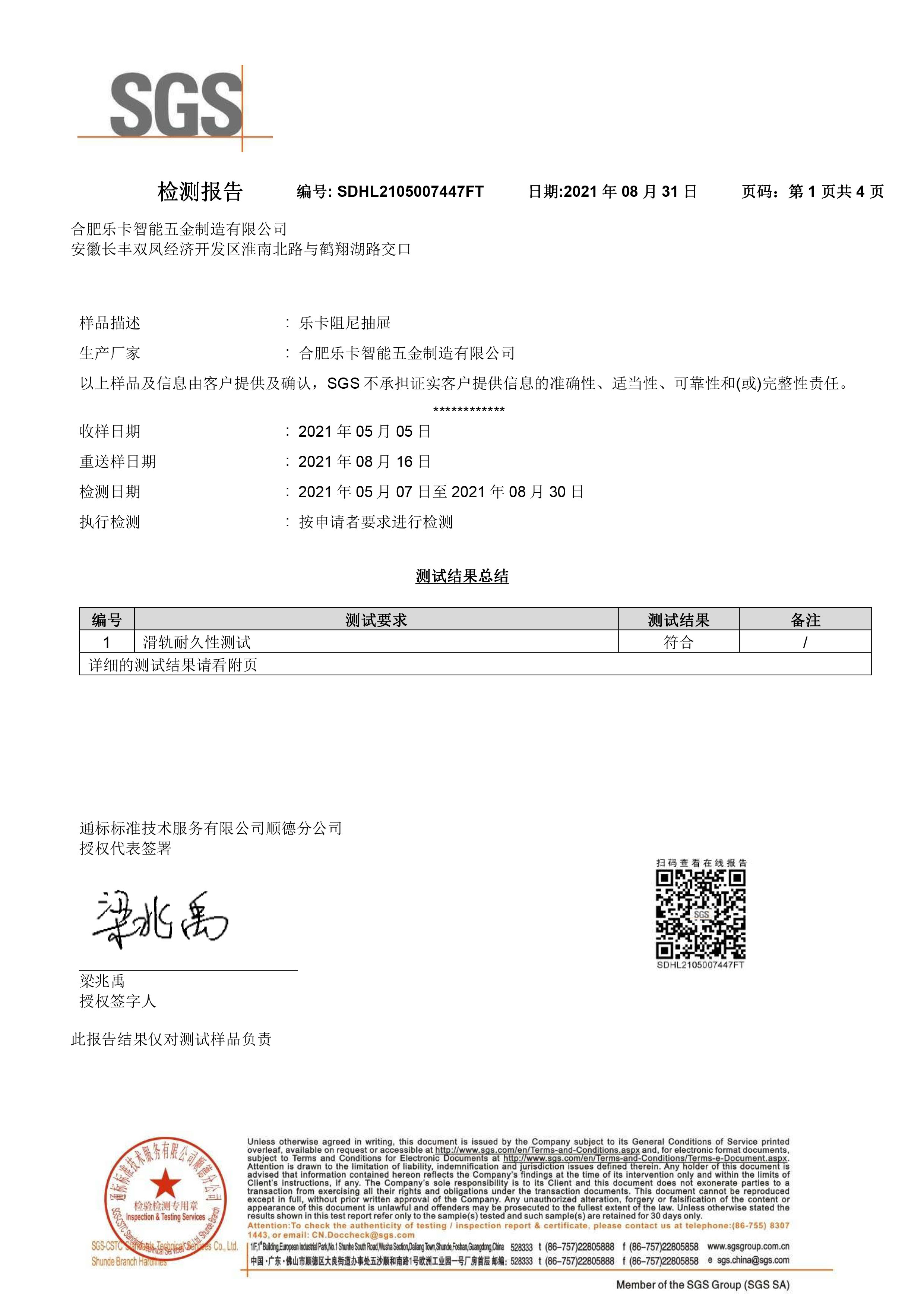 瑞薄阻尼抽屉检测报告